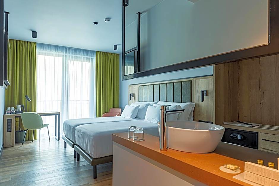 The twin/double room features air conditioning, soundproof walls, a balcony with garden views as well as a private bathroom boasting a shower.